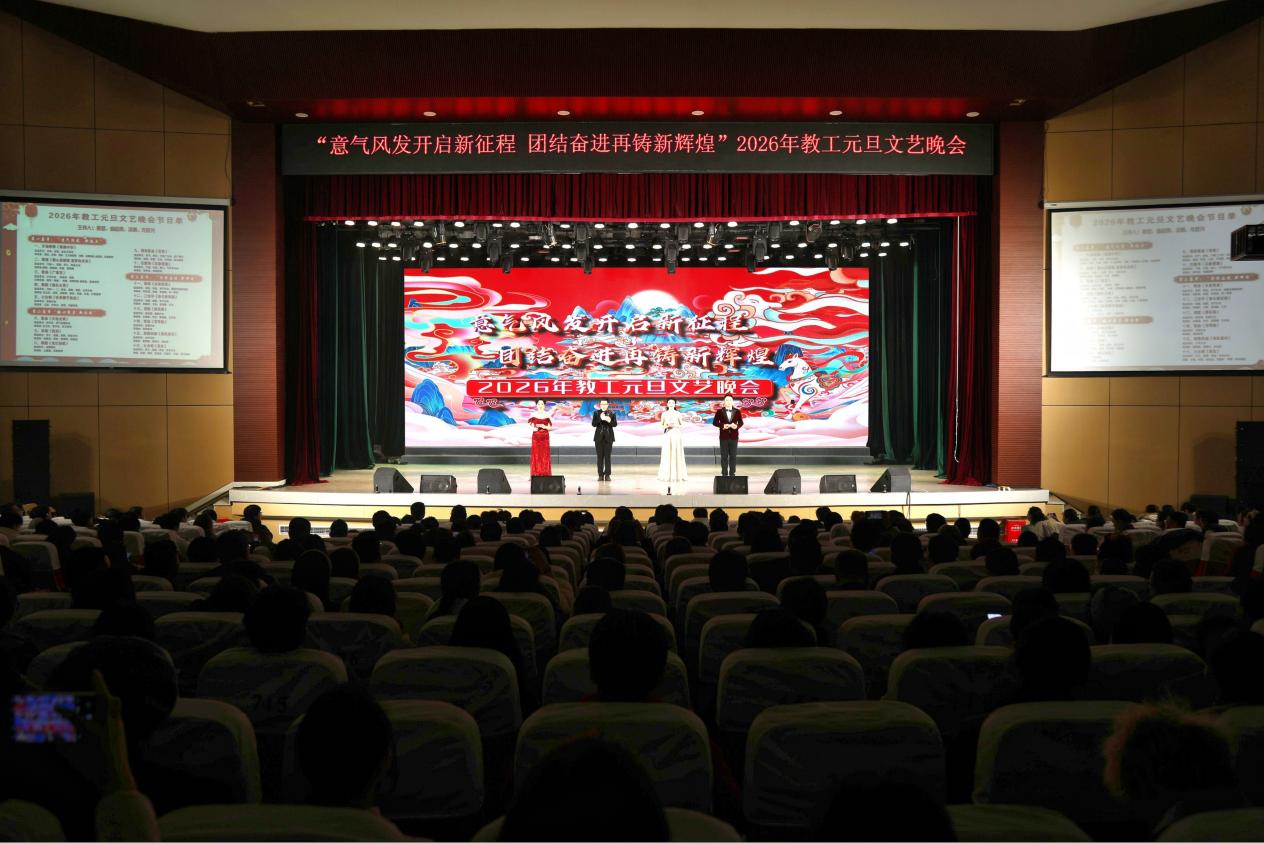 本网讯(党委宣传部 校工会)策马奋蹄迎新岁,九州同庆四海春。12月30日晚,我校“意气风发开启新征程 团结奋进再铸新辉煌”2026教工元旦文艺晚会在十里校区大礼堂成功举办。学校党委书记刘小强,副校长卢致俊,党委委员、副校长黄强等校领导与近千名师生代表欢聚一堂、共迎新年。