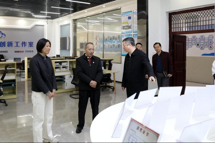 宣讲结束后,张伟走进学校新一代信息技术实训中心,调研电子信息类专业群在课程体系、师资队伍及实习实训等方面的建设情况,重点了解其服务九江“9610”行动计划的具体举措,并与师生代表现场互动交流。
