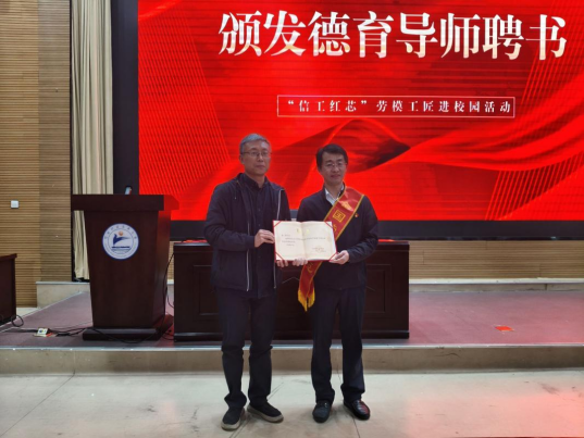 讲座结束后,信息工程学院党总支书记刘浩向余炉颁发“电子信息工程技术专业群德育导师”聘书。此次活动不仅是一次深刻的精神洗礼,更是一堂生动的思政课,旨在激励青年学子将个人理想融入国家发展,以青春之我、奋斗之我,为推进中国式现代化建设贡献智慧与力量。