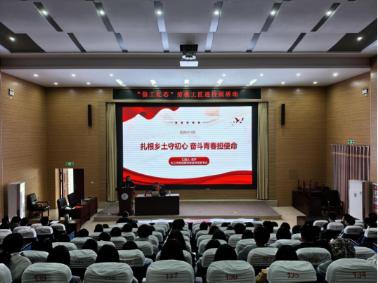 本网讯(信息工程学院)为厚植劳模工匠文化底蕴,激发青年学子扎根乡土、服务社会的使命担当,11月5日,我校信息工程学院在濂溪校区办公楼报告厅举办“信工红芯“劳模工匠进校园活动。特邀全国劳动模范、九江市劳动模范协会党支部书记余炉担任主讲嘉宾,150余名学生参加。